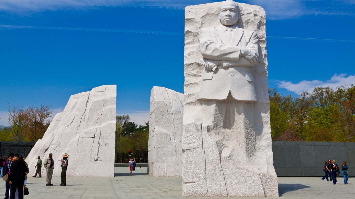 To compile a list of the people – American and otherwise – with the most monuments named after them in the U.S., 24/7 Tempo reviewed the National Monument Audit, a study funded by the Andrew W. Mellon Foundation. The report contains a universe of more than 481,000 federal, state, local, tribal, and territorial records of monuments throughout the country. Some of the prominent monuments on our resulting list are no longer in place, but they remain famous (or infamous), so are worthy of inclusion.